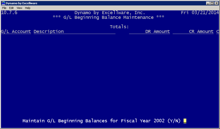 G/L Beginning Balance Maintenance |
