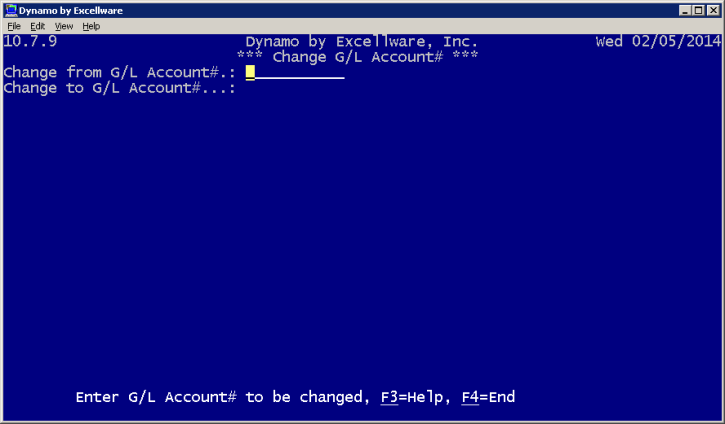 Change G/L Account# is used to reassign numbers of operator-specified G/L Accounts. This will change the default G/L Account# on all future invoice transactions. The application will also move all previous transaction postings to the new account number.