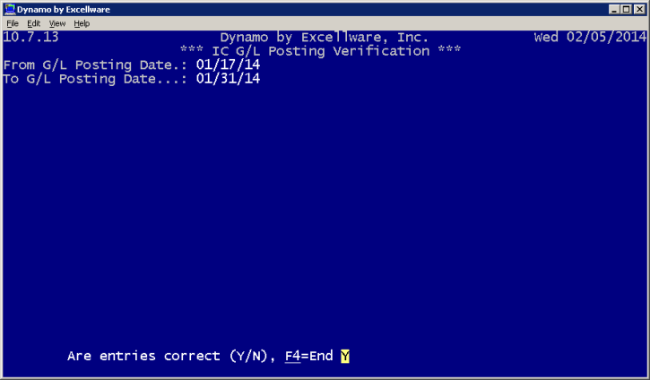 The operator must enter the from G/L posting date and the to G/L posting date.