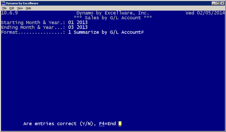 This program allows the operator to view a listing of sales based on each general ledger account. This report can be used to verify that the G/L interface has been accurately completed.