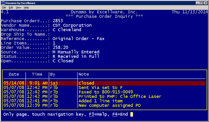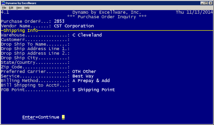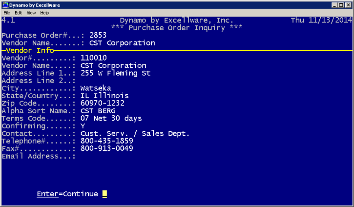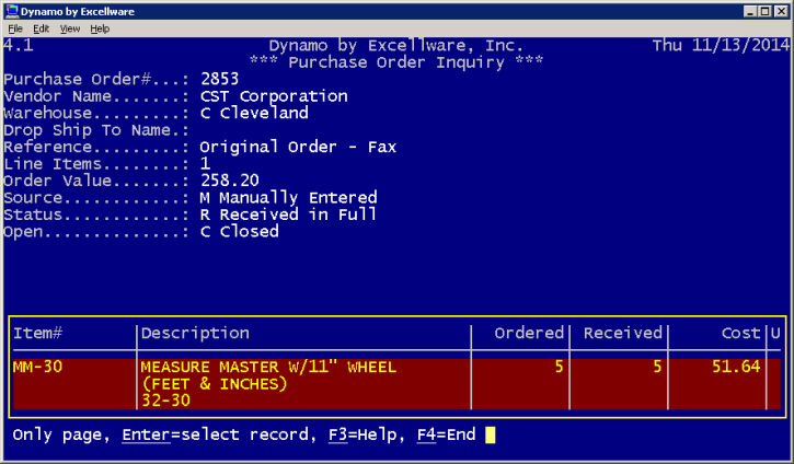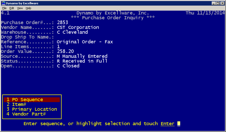 Purchase Order Inquiry is used to look up a particular purchase order. You can type in the purchase order number or search for it.
