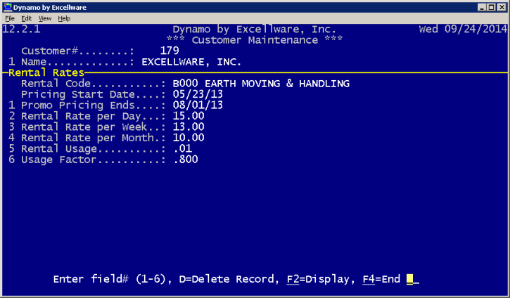 | Rental Code | Choose an existing Rental Code. Rental Codes are created and maintained on the RML menu in Rental Rate Maintenance. |