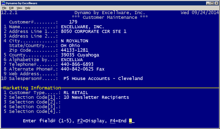 | Selection Code[1][2][3][4] | You may enter up to 4 selection codes to group this customer with others for list generation, customer label printing, or emailing. Selection Codes are maintained in Selection Code Maintenance on the CML menu. |
