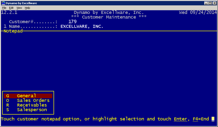 | General | Use this notepad to store information about the customer that doesn't fit in any of the other fields in Customer Maintenance. |