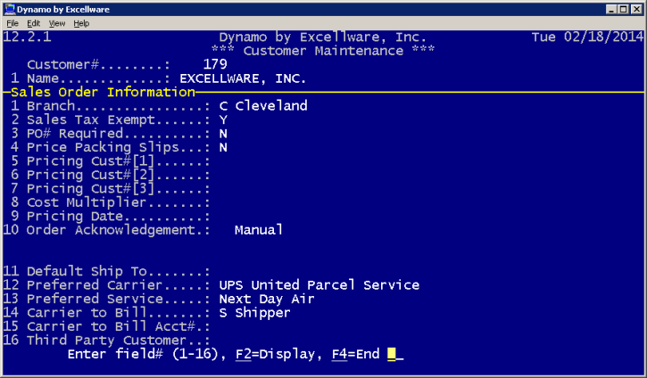 | Default Ship To | Type "SAME" to use the Bill To Address, the spacebar to not specify a default, or F2 to display a listing of addresses to choose from. |
