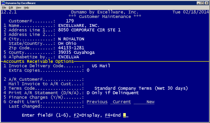 | Finance Charges | Enable this option if finance charges apply to this customer. Dynamo computes these finance charges by using Compute Finance Charges on the ARR menu. The ARR menu is also where these finance charges can be maintained and updated. |