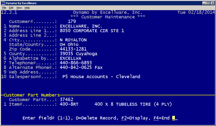 Dynamo has the capability to show customer part numbers on invoices. The operator can also look up items using the customer part number. If this option is used, then it is maintained here.