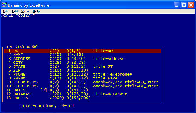 CALL "CDS277"