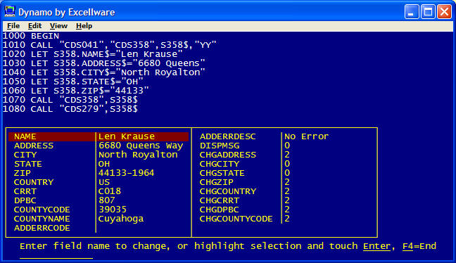 This application is only available to customers that participate in the Excellware Priority Support plan, as this program uses a fee-based service provided by Melissa Data. You can verify that the Dynamo Address Correction option is enabled on a particular system using the I menu option. In the Application Software section, the Licensed Options will include 'DAC' when this option is enabled.